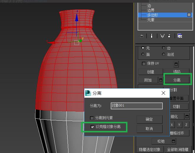 4、在多边形模式把上半边选择然后勾选克隆对象分离