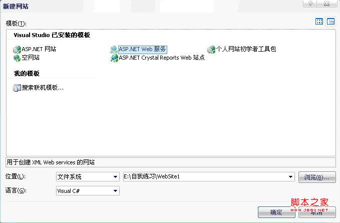 首先,打开VS2005,打开"文件-新建-网站",选择"ASP.NET Web服务"