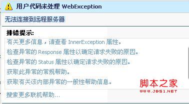 而整个计算并不是在本地进行的,是在Web服务端进行计算的然后将结果通过XML返还给了调用方的,所以,在运行该程序的时候,WebService程序还必须启动,否则会报无法连接远程服务器的异常,如下图: