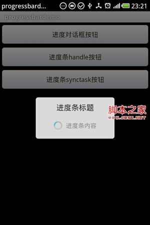 myDialog = ProgressDialog.show(ProgressbarDemo.this, "进度条标题",