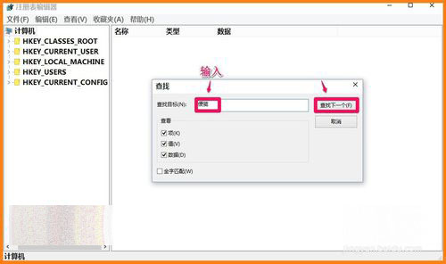 4、我们点击查找下一个后,系统进行搜索:正在搜索注册表;