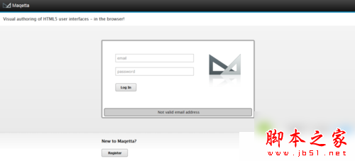 按照命令窗口提示,在浏览器上输入http://localhost:50000/,即可进入maqetta登录注册界面;