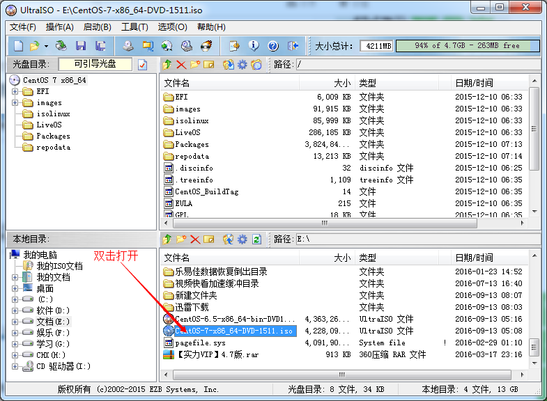在下面选中我们需要安装的CentOS的镜像,双击打开。