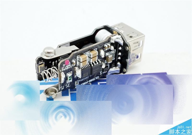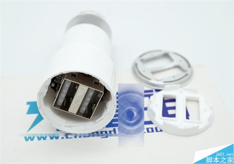 我们在车充四周都没有找到螺丝,整个装配采用了数码产品常见的超声波工艺。从顶部下手撬开,非暴力不拆解。