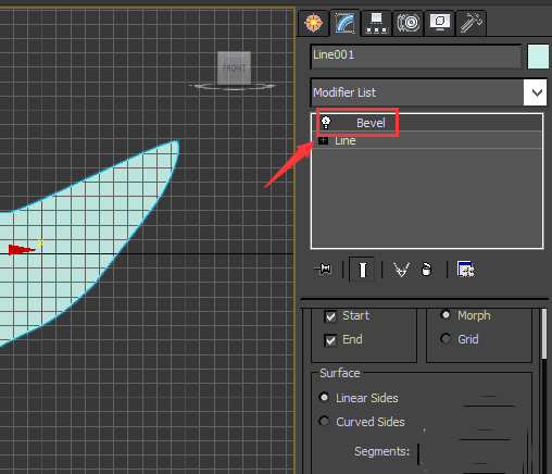 8、再在修改器里给曲线添加bevel修改器,如图所示: