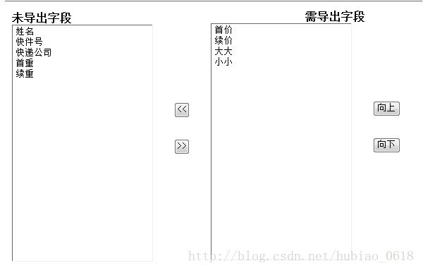 最近再做报表时候,直接把全部字段都导出了,但这不太灵活。回忆老师讲过的项目做报表如下左右上下移功能灵活控制,所以就尝试下咯。
