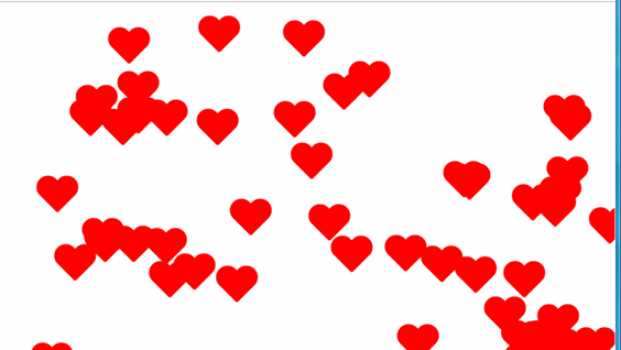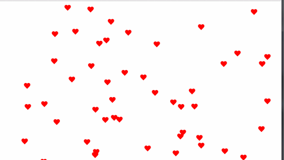 爱心我们画完了,那么怎么让爱心实现满屏飞呢,其实只需要调用jquery.js和 snowfall.jquery.js就能实现,效果图如下: