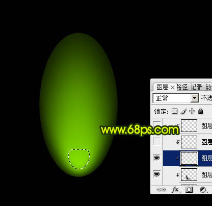 8、新建一个图层,用钢笔勾出下图所示的选区,羽化5个像素后填充稍亮的绿色:#90F403,效果如下图。