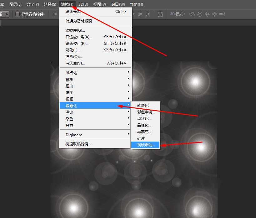4、那么在滤镜中添加铜版雕刻,如图所示