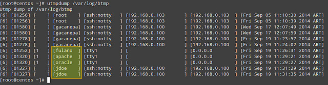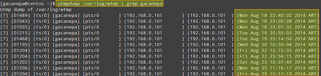 在本文中,我将介绍如何使用utmpdump,这个小程序来自sysvinit-tools包,可以用于转储二进制日志文件到文本格式的文件以便检查。此工具默认在CentOS 6和7系列上可用。utmpdump收集到的信息比先前提到过的工具的输出要更全面,这让它成为一个胜任该工作的很不错的工具。除此之外,utmpdump可以用于修改utmp或wtmp。如果你想要修复二进制日志中的任何损坏条目,它会很有用(LCTT 译注:我怎么觉得这像是做坏事的前奏?)。