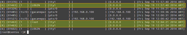 在 [Fri Sep 19 12:07:24 2014 ART],用户 root 登出。