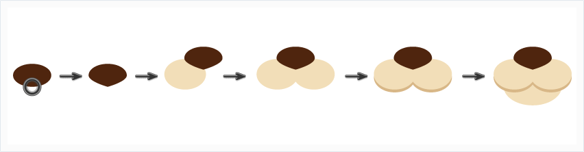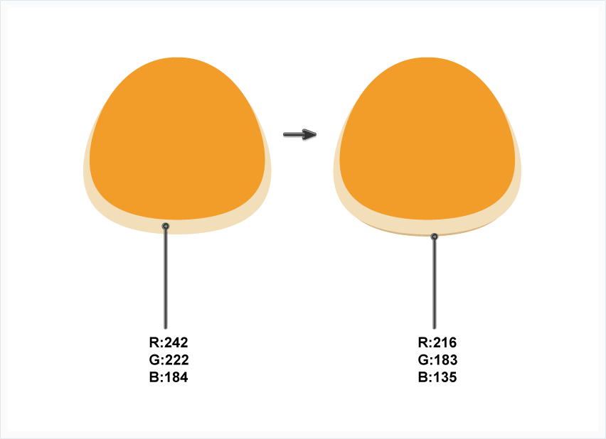 步骤2、让我们给头部增加一些深度。复制这个形状并粘贴到后面(Control+C,Control+B),将其向下移动一点。把下层的椭圆稍微放大一些,然后更改颜色为米色。再复制一份并粘贴到最后面(Control+B),将其向下移动一点,然后将颜色更改为深米色。