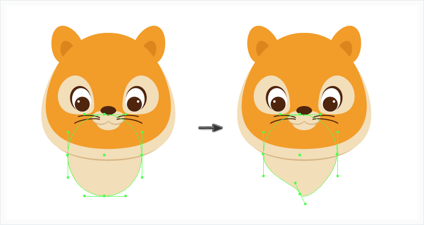 使用直接选择工具(A),将耳朵的左右锚点向下移动。复制这个形状,把颜色改为稍暗一点然后缩小一些,放在较大的形状中。