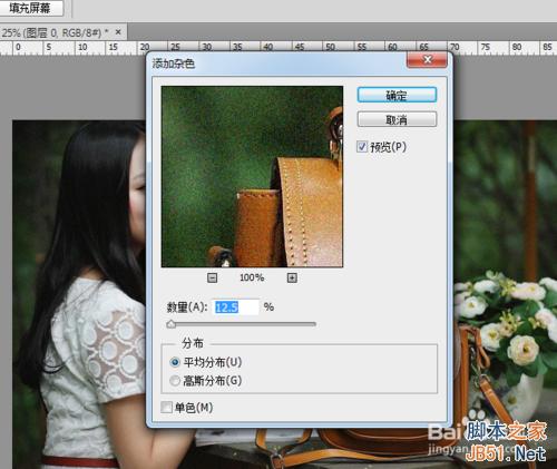 执行“滤镜”--“杂色”--“添加杂色”,如下图所示。