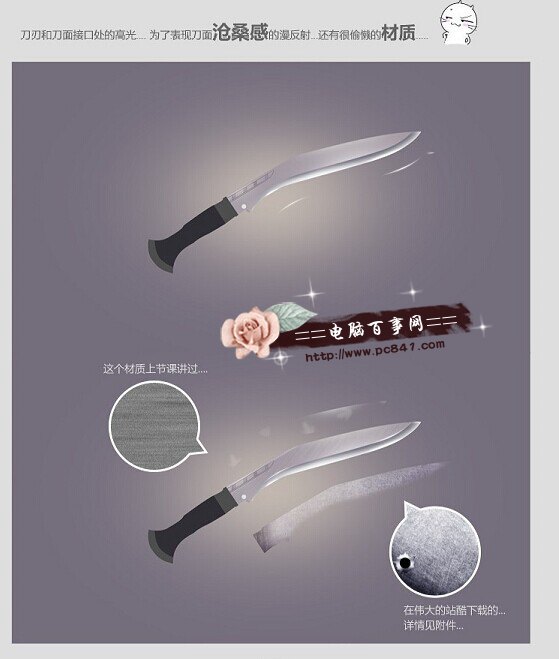 以下是Photoshop鼠绘逼真小刀具体步骤,每张图片中均标有操作提示。