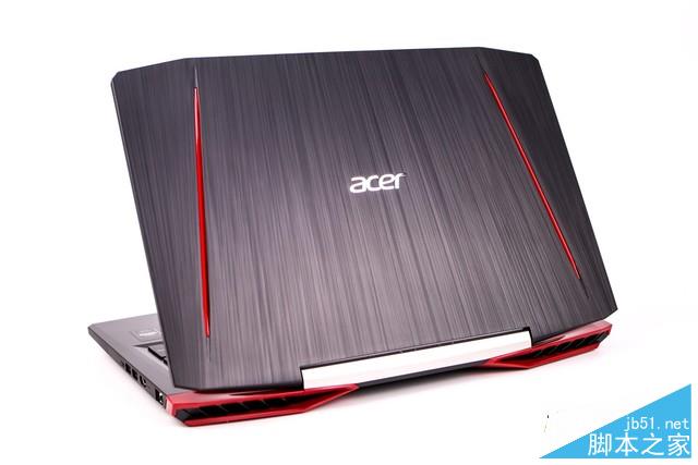 首先我们来看看外观,重新设计的A面采用两条红色灯条显得个性十足,虽然顶盖部分以及银色转轴部分并没有采用金属材料,但纵向拉丝工艺还是提升了不少颜值。当然了,一般来说5000这个价位段的游戏本很少会采用金属材料。