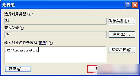 6. 在弹出的选择组对话框中,直接点击“高级(A)...”按钮。如下图所示: