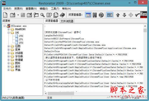 从官方网站下载CCleaner便携版并解压,然后运行Restorator,打开主程序文件CCleaner.exe以及Lang目录下的lang-2052.dll文件。