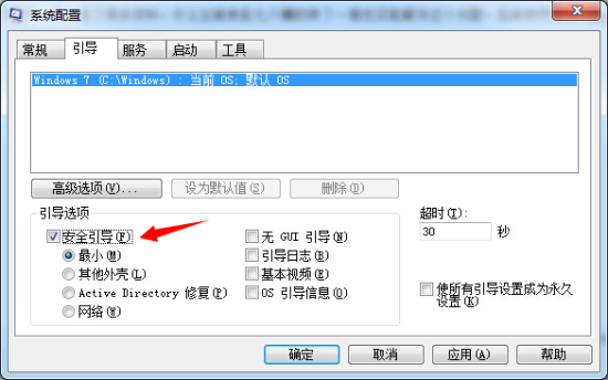 今天碰到一个客户,他的电脑只能进入到安全模式里边。Windows 7 系统,琢磨了半天,网上查了很多资料。什么注册表乱七八糟的弄了一堆也没能解决这个问题。后来突然发现 Msconfig 里边有安全引导这么一个选项。取消掉,顺利正常进入到系统了。