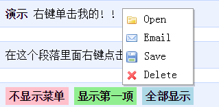 <p class="demo2">在这个段落里面右键点击触发菜单</p>