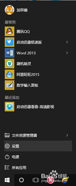 1、鼠标左键点击Win10左下角的开始图标,然后点击进入“设置”。