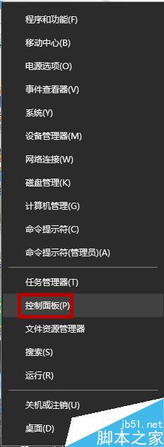 1、鼠标右键点击开始按钮,点击“控制面板“。
