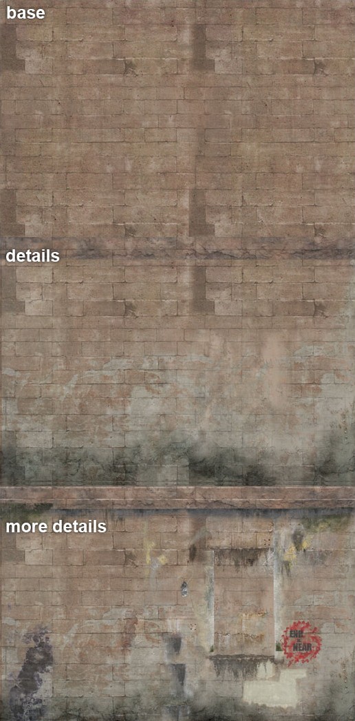 法线贴图是使用NVIDIA插件和CrazyBump创建的。我把之前的灰色图片上的不需要的细节都移除了,比如污点,挑染和涂鸦等等,然后基于材质,我把基础纹理做了模糊,调节对比度和透明度来控制景深。有时候,如果法线贴图仍然看起来很平面,我会手绘石头之间的缝隙,比如增加更多的景深(图07)。