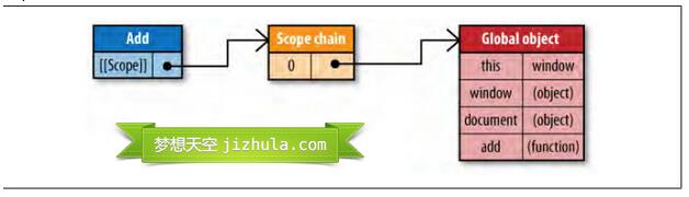 函数add的作用域将会在执行时用到。例如执行如下代码: