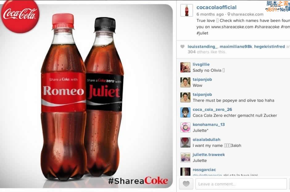 可口可乐公司今年夏天在全美发起名为“分享可乐”的宣传活动。他们选取全美250个最流行、最普遍的名字并将这些名字印在可口可乐的瓶子上。消费者可以喝到印有自己名字的可口可乐,然后通过社交媒体让其他人知道这件事情。如果你的名字恰好不在其列,你也可以在当地的购物中心进行免费定制。这次活动最终在各大社交媒体上引发了超过12.5万张帖子,收获了96%的正面评价。