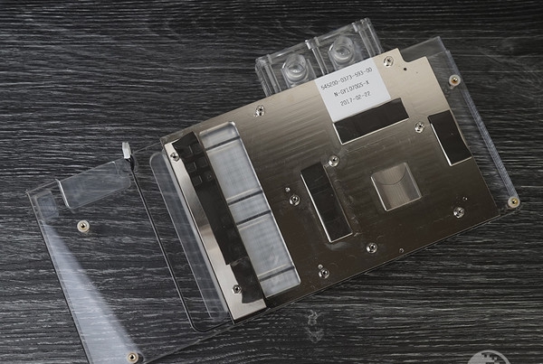 瞄了一眼冷头内部的水路设计和外观,笔者断定这应该是BYKSKI的冷头,不信乃们就去深水宝搜搜看(笑~),总的来看,耕升 GTX1070 冰魂应该是耕升和BYKSKI深入合作的成果!