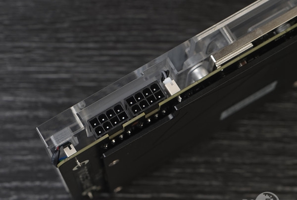 整卡尺寸为310×125×30mm,背部附有全覆盖黑化金属背板,属于比较长的显卡产品,但同时由于没有了散热风扇和厚重的鳍片,使得整张卡看起来显得非常薄!