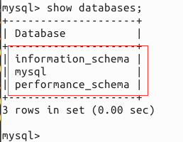 showdatabases;注意分号不能少,如下图中显示系统自带的database。