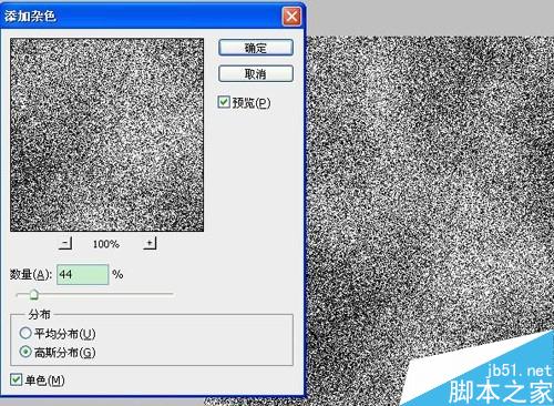将图层右击转换成智能对象,点击滤镜—杂色—添加杂色,设置数量44,高斯分布、单色。