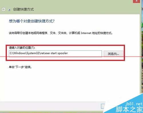 1、输入“C:\Windows\System32\net.exe start spooler”(不带引号,如图)后,单击“下一步”