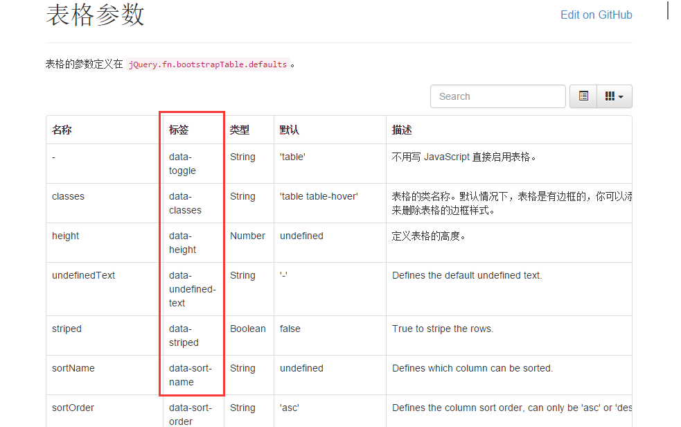 最近使用bootstrap组件的时候发现一个易用性问题,很多简单的组件初始化都需要在JS里面写很多的初始化代码,比如一个简单的select标签,因为仅仅只是需要从后台获取数据填充到option里面,可是从后台取数据就需要js的初始化,所以导致页面初始化的时候js的初始化代码里面出现很多重复的代码,看着很闹心。于是想起bootstrap table里面的data属性来,如果能够直接在html里面使用data-*这种方式来初始化简单的组件,那该多爽。我们先来看看bootstrap table的文档: