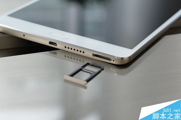 华为平板 M3的外观仍然是传承了家族式设计,三段机身,使用无缝纳米注塑技术,采用3D轨迹钻切工艺。整体比较轻薄,仅310g,4.6mm厚度。