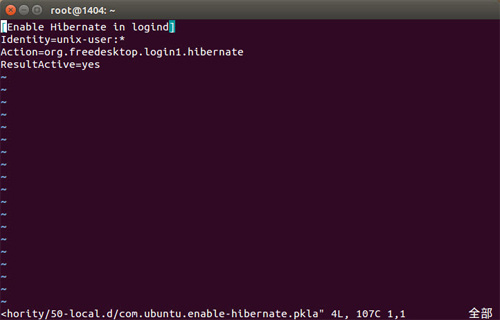 sudo vi /etc/polkit-1/localauthority/50-local.d/com.ubuntu.enable-hibernate.pkla