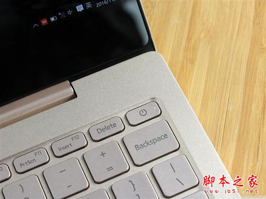 小米笔记本Air 12电源开机按钮位于键盘右上角区域,其中还内置了一个LED状态指示灯,可快速查看机器运行状态。