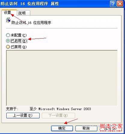 在弹出的窗口单击“设置”选项卡,选择“已启用”,单击“确定”