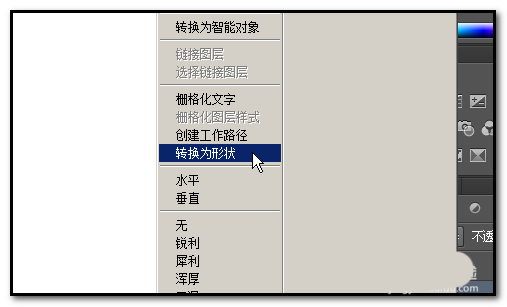2、然后,鼠标在文字图层上,右击,弹出的菜单中点:转换为形状