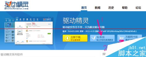 7、去百度下载一个驱动精灵,1表示你可以上网,下载这个就行;2表示你电脑无法上网,(你会问我无法上网怎么去下载这个软件?)不要激动,你可以用别人的电脑下载好了拷贝过来,进行安装,里面集成了万能网卡驱动,这样子安装好驱动后就可以上网,再进去驱动精灵进行显卡驱动跟新,然后弄好了重启,就有毛玻璃了