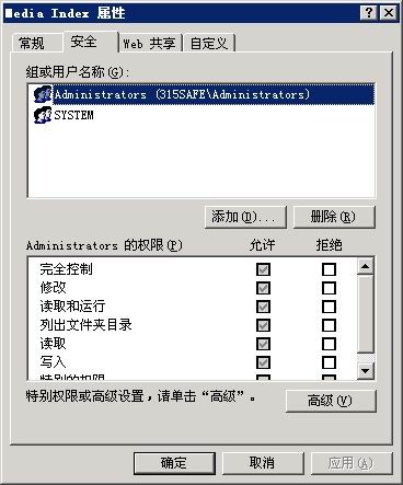 先说关于系统的NTFS磁盘权限设置,大家可能看得都多了,但是2003服务器有些细节地方需要注意的,我看很多文章都没写完全。