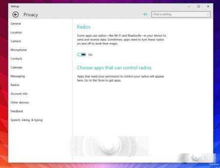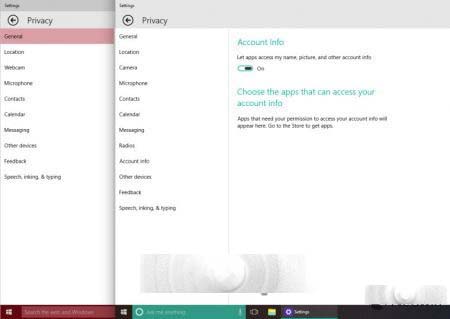 在build 10061中,微软为“隐私”设置添加了“无线模块”、“账户信息”和“消息”等选项。此外,Webcam(网络摄像机)被重命名为Camera(相机)。