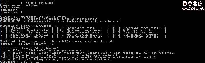 我们选择1,对用户账户密码进行清除。