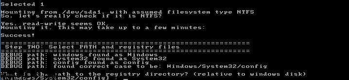 我们继续选择1,当然如果你对Offline NT Password软件了解更多的话可以选择2进入注册表进行编译。