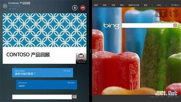 • 当你需要同时使用其他应用时,在任何大小的窗口中将Lync与其他应用并排运行。