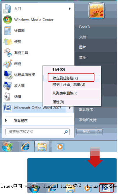 (右键点这个程序或者是快捷方式,选锁定到任务栏。也可以把程序拖到任务栏。)