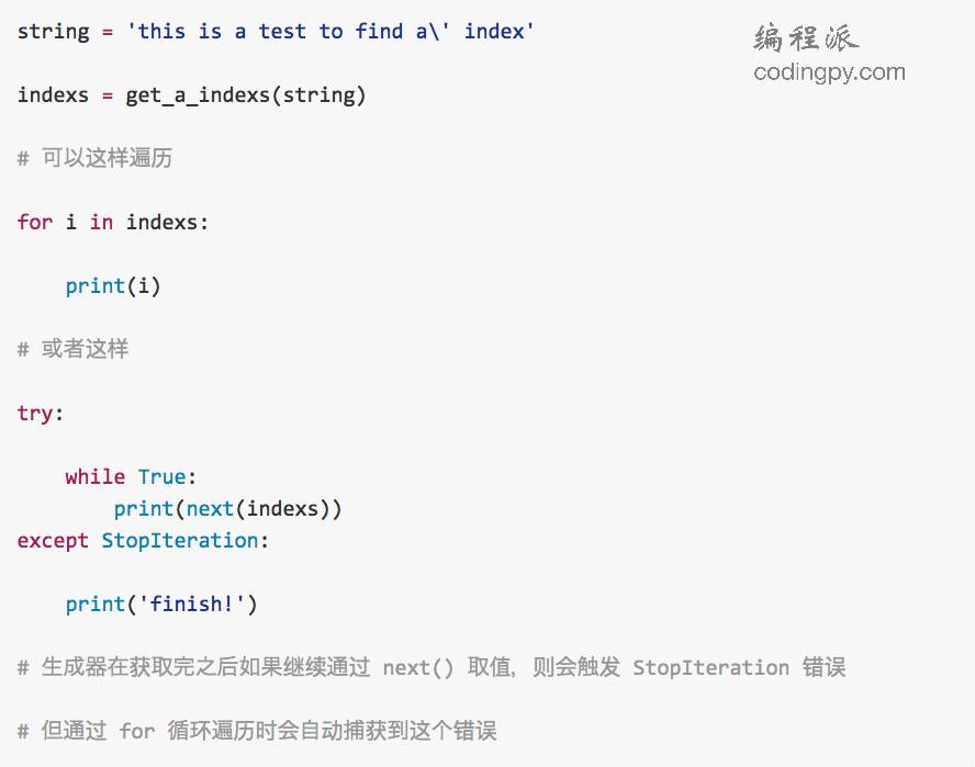 因此,使用生成器generator会更好。生成器是使用yield表达式的函数,调用生成器时,它不会真的执行,而是返回一个迭代器,每次在迭代器上调用内置的next函数时,迭代器会把生成器推进到下一个yield表达式: