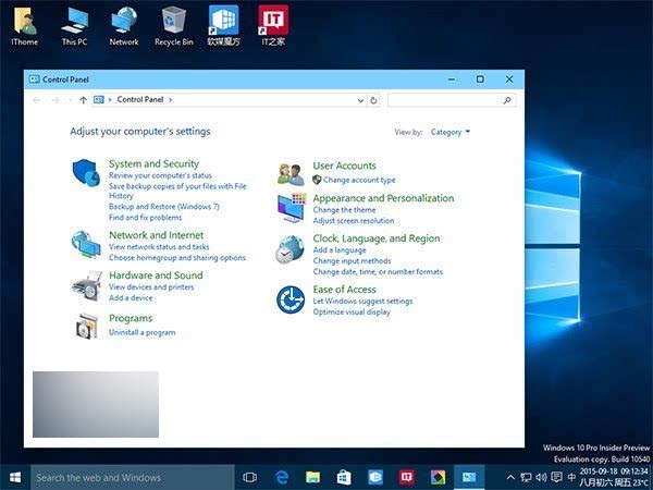 ▲控制面板“外观和个性化”延续了Build 10537的新图标
