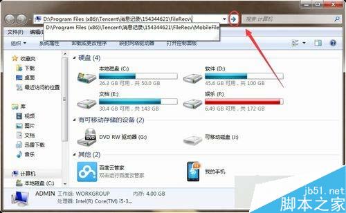 7、单击回车图标,进入QQ接收文件的文件夹;